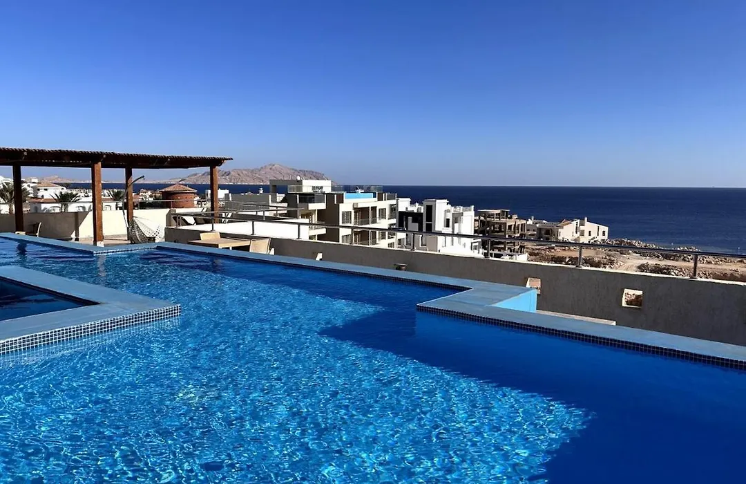Das 280 m² große Apartment Amazing 2 Storey 4-Bedroom With Pool View, Sea View, Infinity Pool On The Roof Sharm El-Sheikh mit Blick auf den Innenhof liegt 4 km vom Friedensplatz in Sharm El-Sheikh. Das Apartment bietet WLAN in den Zimmern.